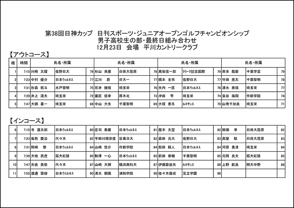 男子高校生の部、同中学生の部:1日18ホール、2日間合計36ホールズストロークプレー