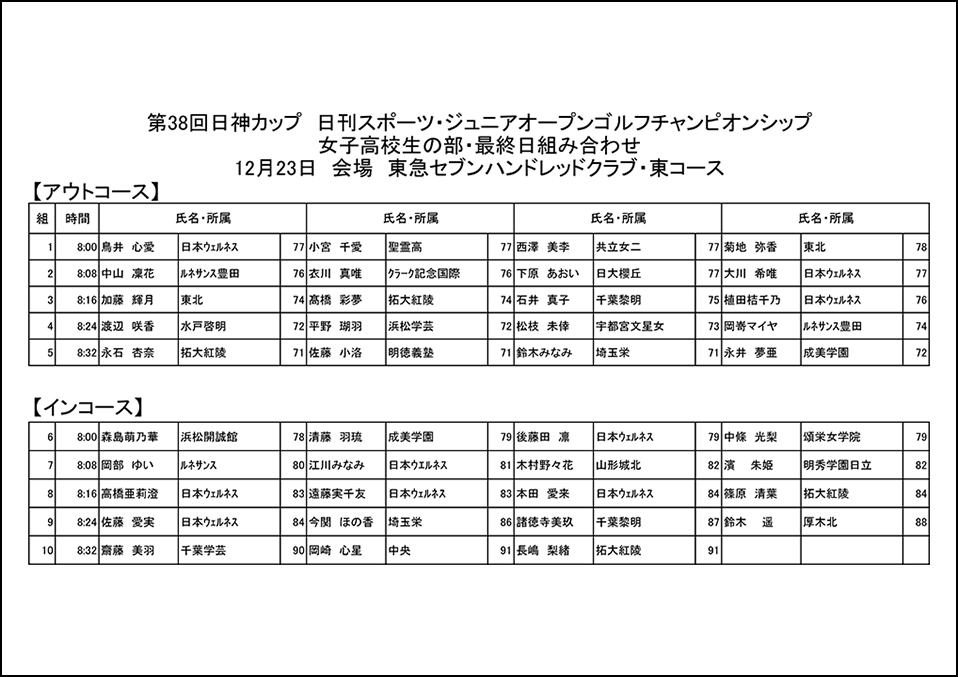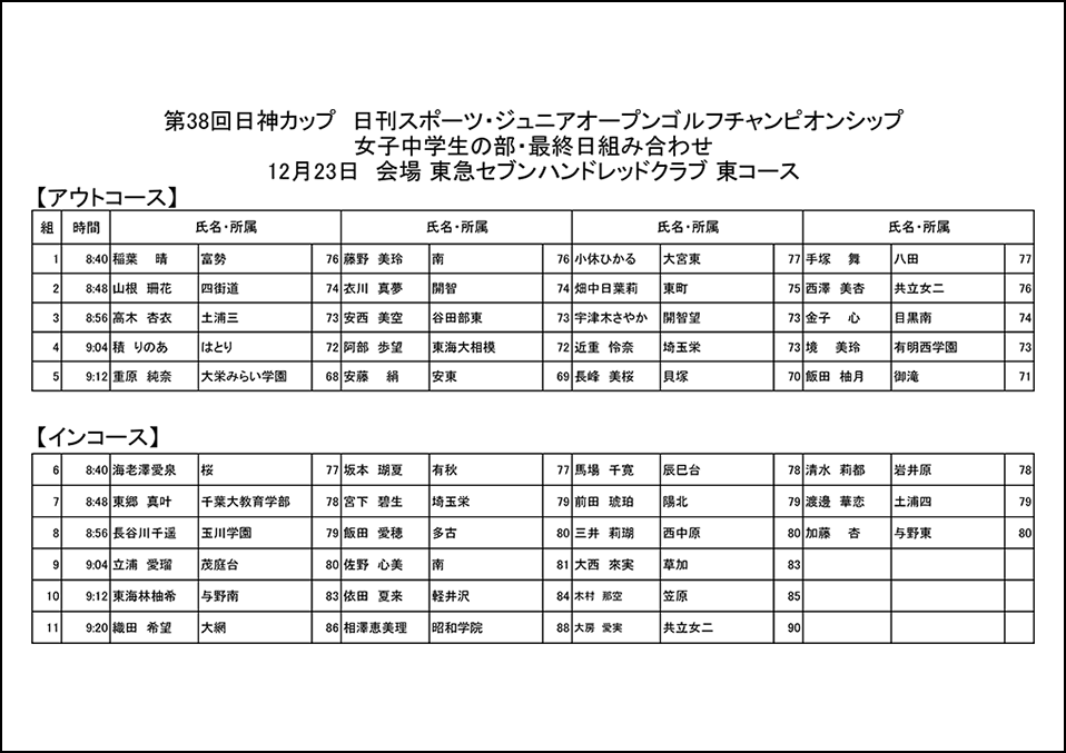 女子高校生の部、同中学生の部:1日18ホール、2日間合計36ホールズストロークプレー